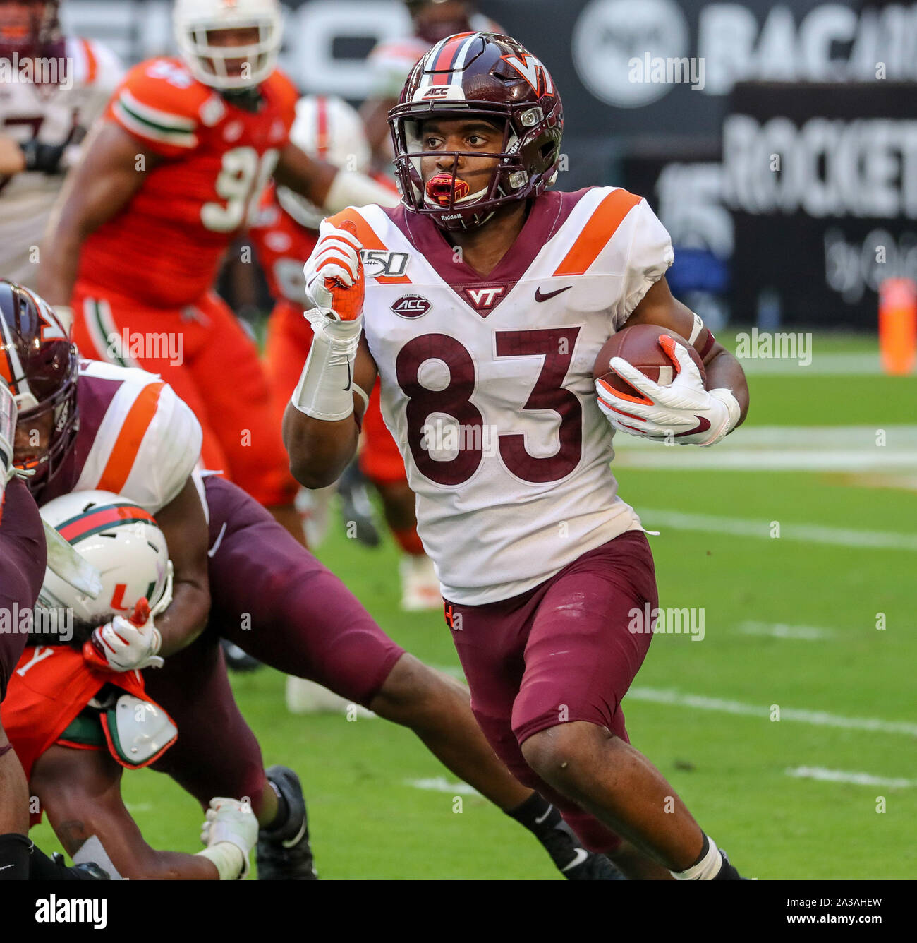 Miami Gardens Florida Usa 05th Oct 2019 Virginia Tech Hokies Wide Receiver Tayvion Robinson 83 Runs With The Ball During The College Football Game Between The Virginia Tech Hokies And The Miami